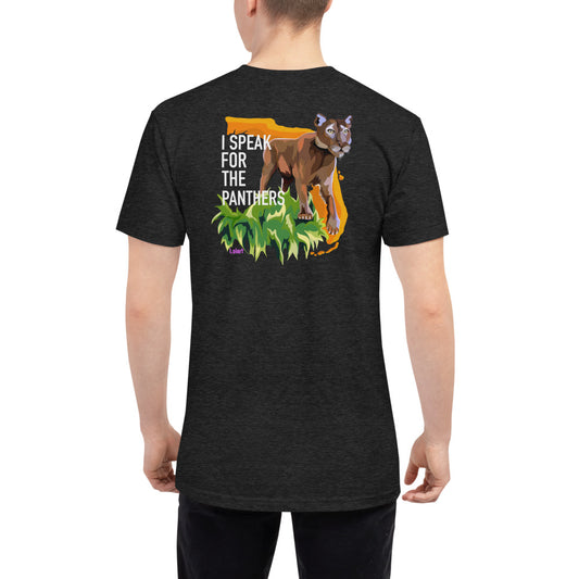 fStop's Short-Sleeve Unisex T-Shirt with logo in front and "I Speak for the Panther" on back.